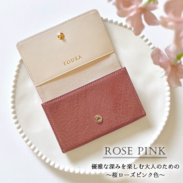 【現物をお届け】桜染めレザー名刺入れ・カードケース:桜ローズピンク色【10日以内に発送】