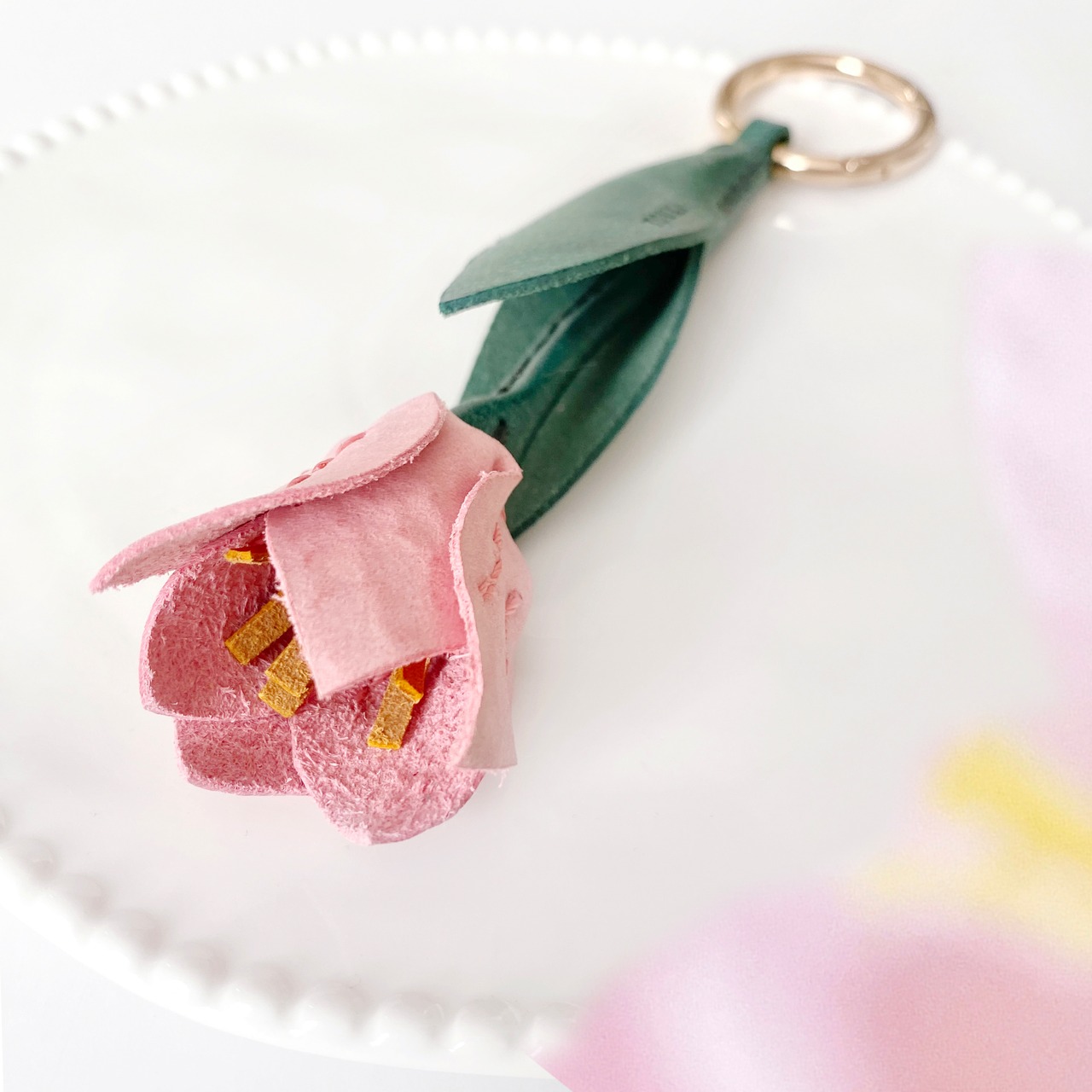 TOUKA 母の日 ギフト プレゼント 入学祝い 進級祝い 結婚祝い 誕生日 女性 彼女 奥さん 上司 餞別 キーリング キーチャーム キーホルダー 本革 レザー 花 お母さん 記念日 春 縁起 手縫い 送別 感謝 ピンク 春の花 母の日