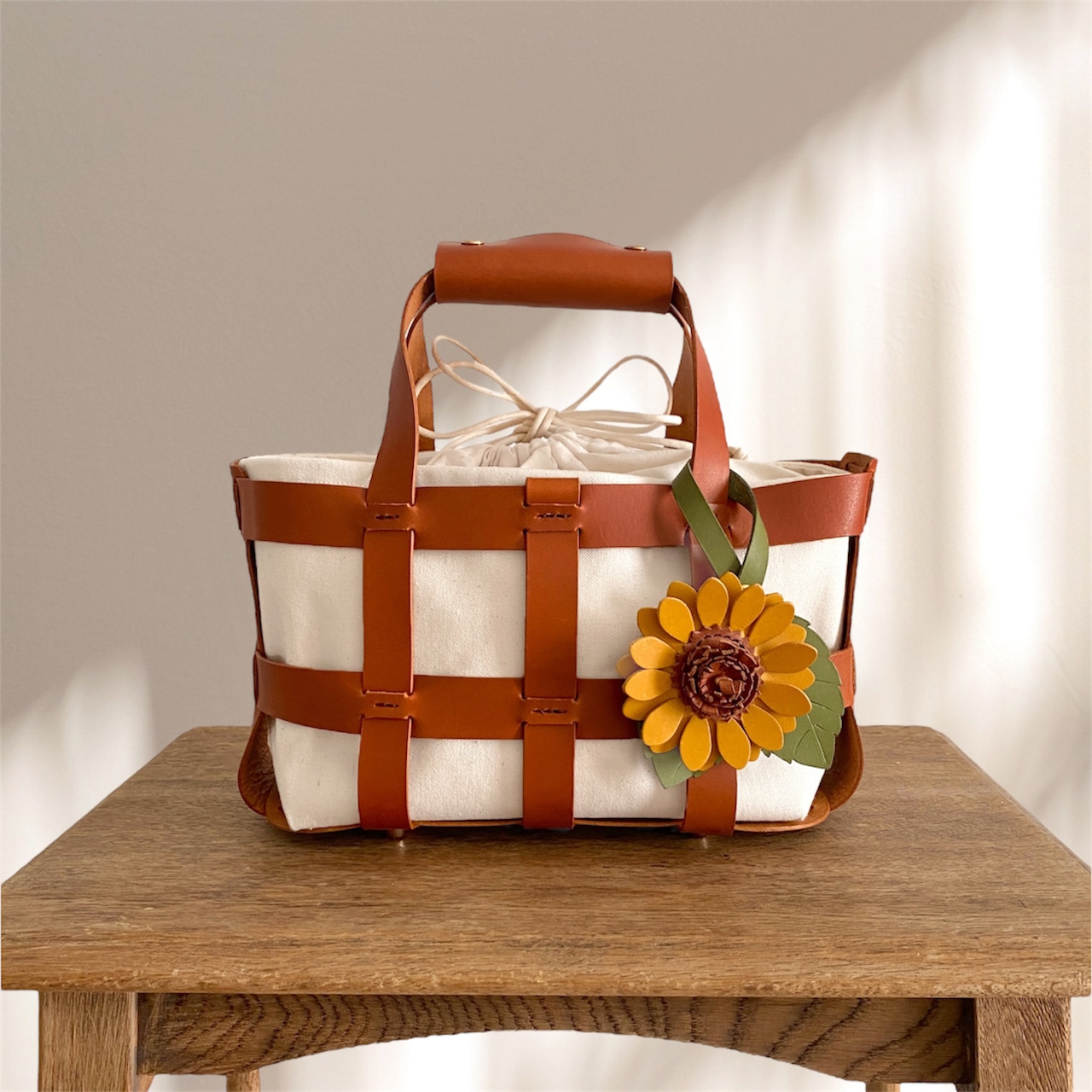 向日葵チャーム付き!本革かご&巾着バッグ(30日以内に発送)
