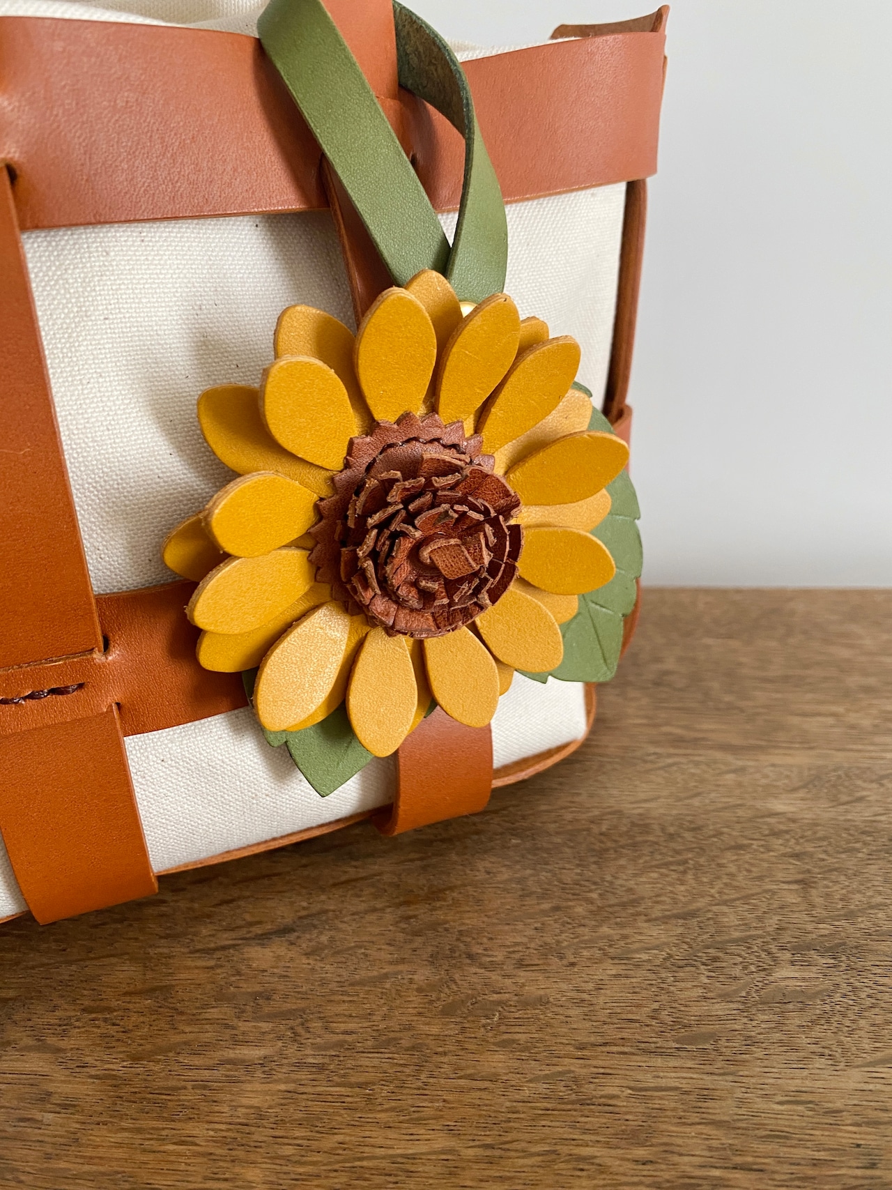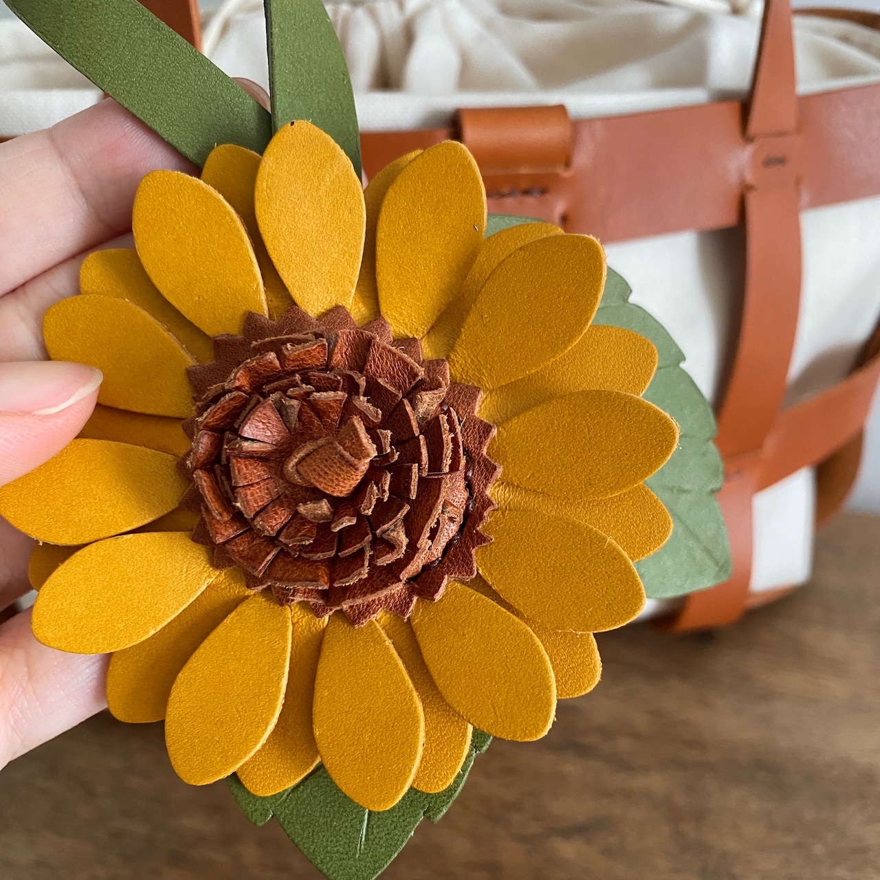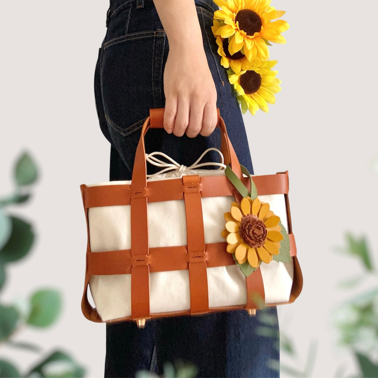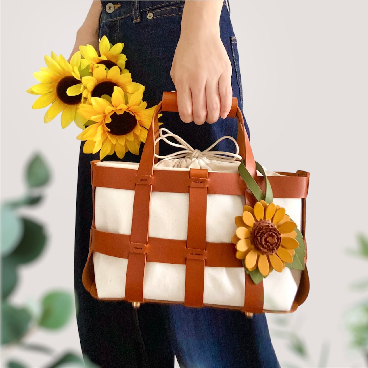 季節を感じる元気いっぱいの向日葵チャームがバッグに華やかさを添えています。