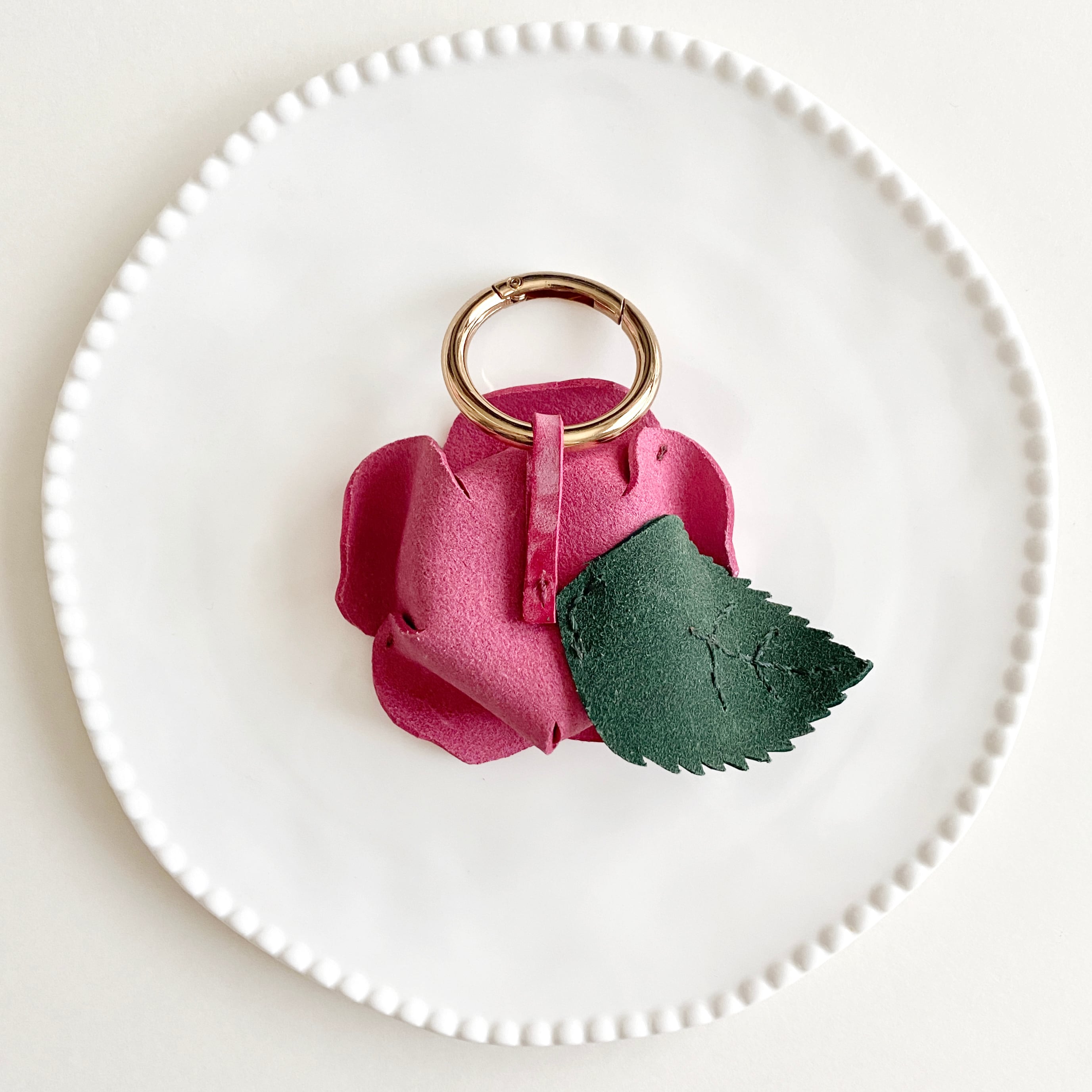 TOUKA 母の日 ギフト プレゼント 入学祝い 進級祝い 結婚祝い 誕生日 女性 彼女 奥さん 上司 餞別 キーリング キーチャーム キーホルダー 本革 レザー 花 夏の花 お母さん 記念日 縁起 手縫い 送別 感謝 退院祝い ピンク ローズ バラ バッグチャーム