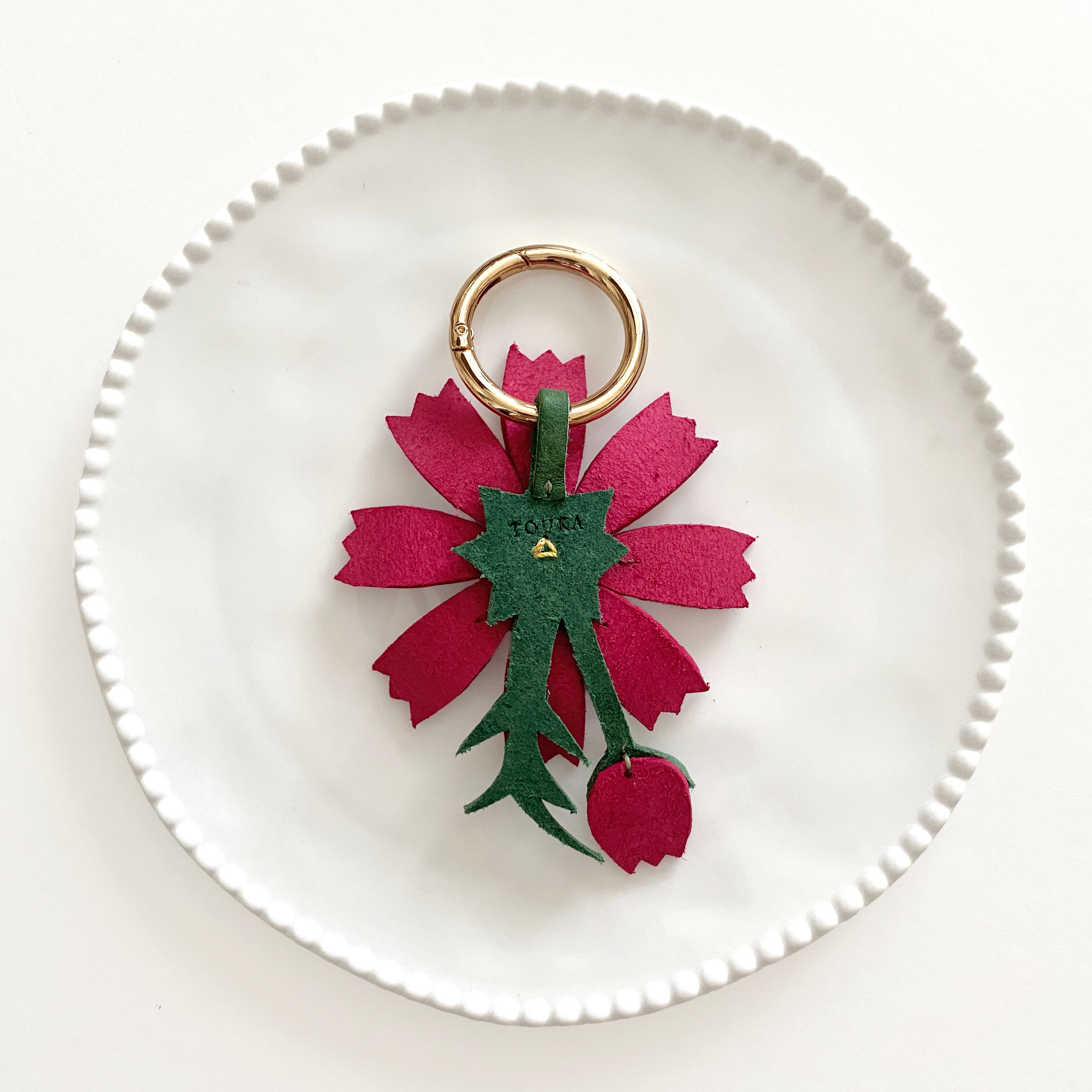 TOUKA 母の日 ギフト プレゼント 入学祝い 進級祝い 結婚祝い 誕生日 女性 彼女 奥さん 上司 餞別 キーリング キーチャーム キーホルダー 本革 レザー 花 夏の花 お母さん 記念日 縁起 手縫い 送別 感謝 退院祝い バッグチャーム 秋の花 コスモス 秋桜 赤 レッド 濃いピンク