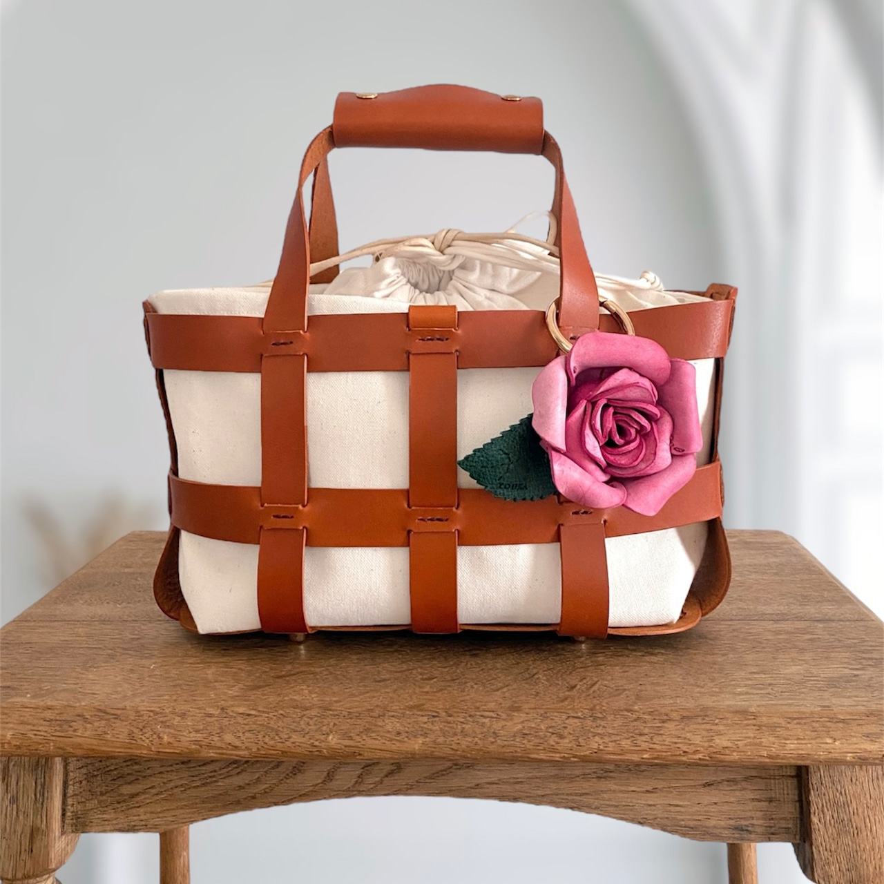 【個別対応】薔薇チャーム付き!本革かご&巾着バッグ(30日以内に発送)