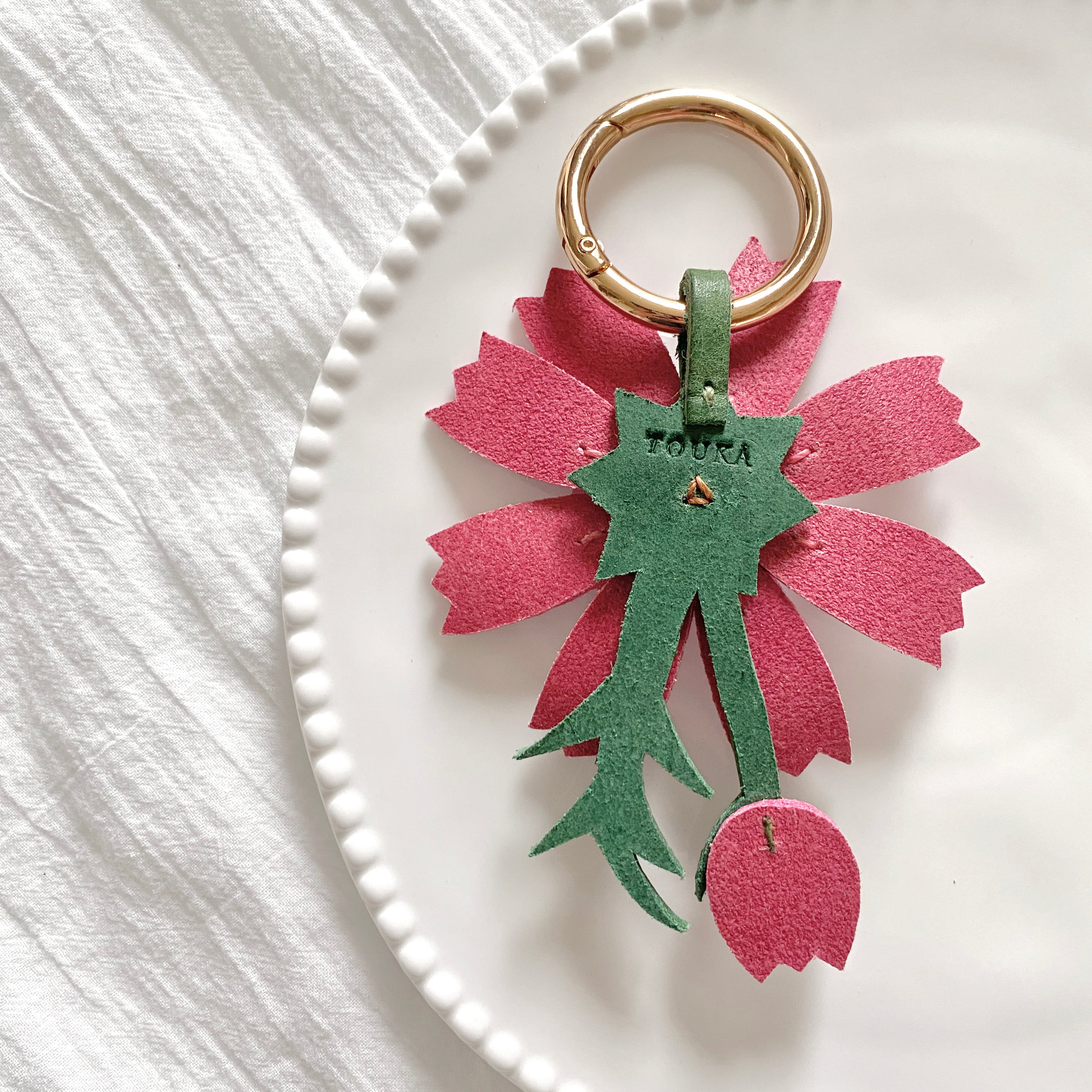 TOUKA 母の日 ギフト プレゼント 入学祝い 進級祝い 結婚祝い 誕生日 女性 彼女 奥さん 上司 餞別 キーリング キーチャーム キーホルダー 本革 レザー 花 夏の花 お母さん 記念日 縁起 手縫い 送別 感謝 退院祝い バッグチャーム 秋の花 コスモス 秋桜 ピンク