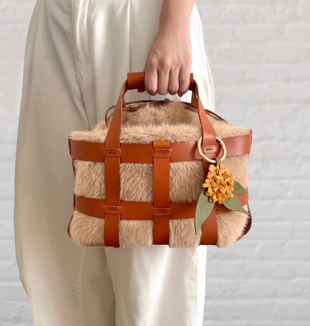 やさしい香りと懐かしさを閉じ込めた金木犀のチャームとふわふわのファーバッグでぬくもりを感じるコーデをお楽しみください。