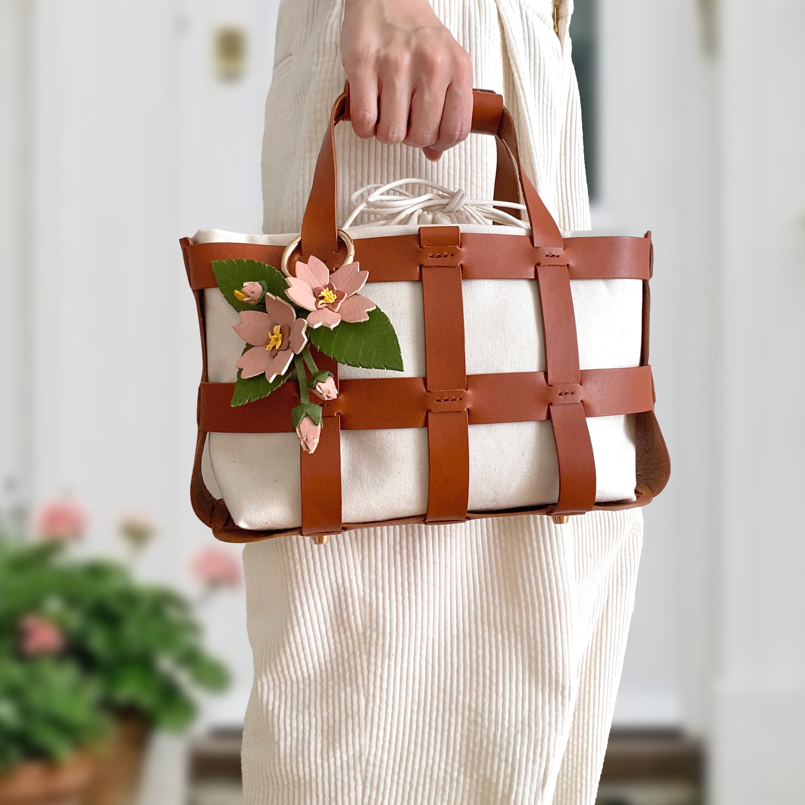 再販しました!桜染めレザーで仕立てた『桜』のバッグチャーム:10日以内に発送