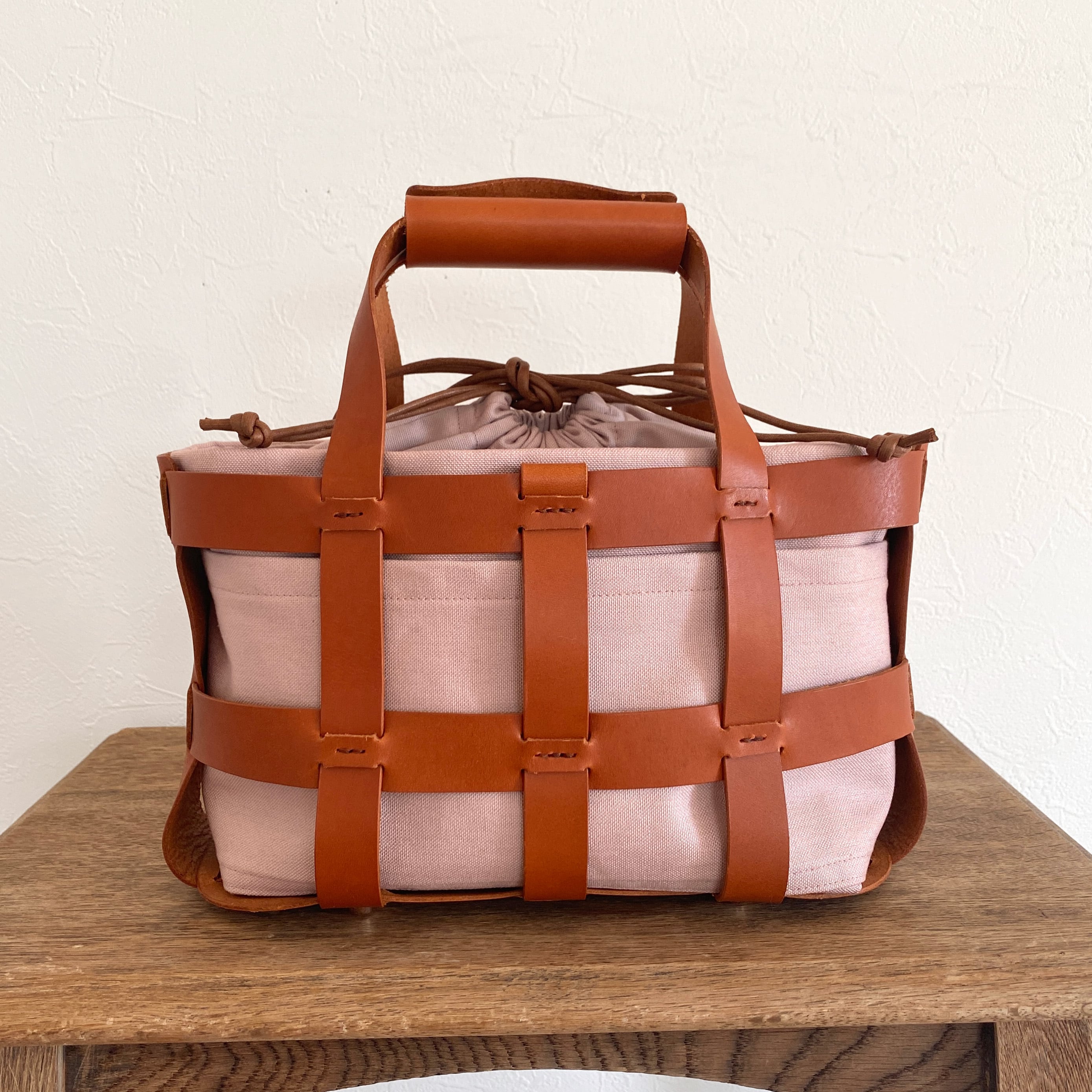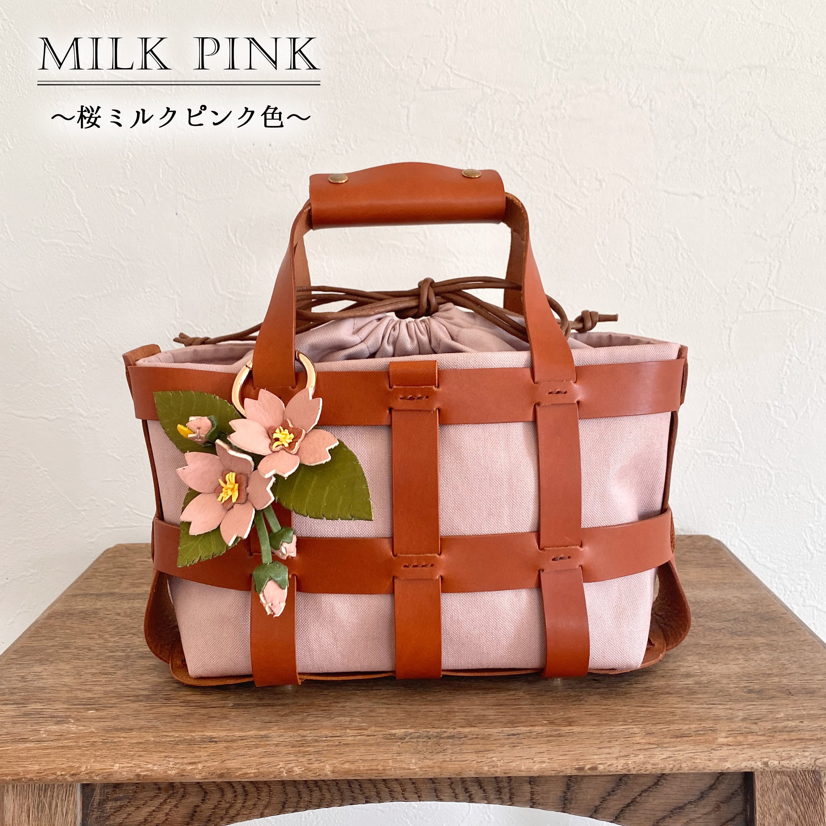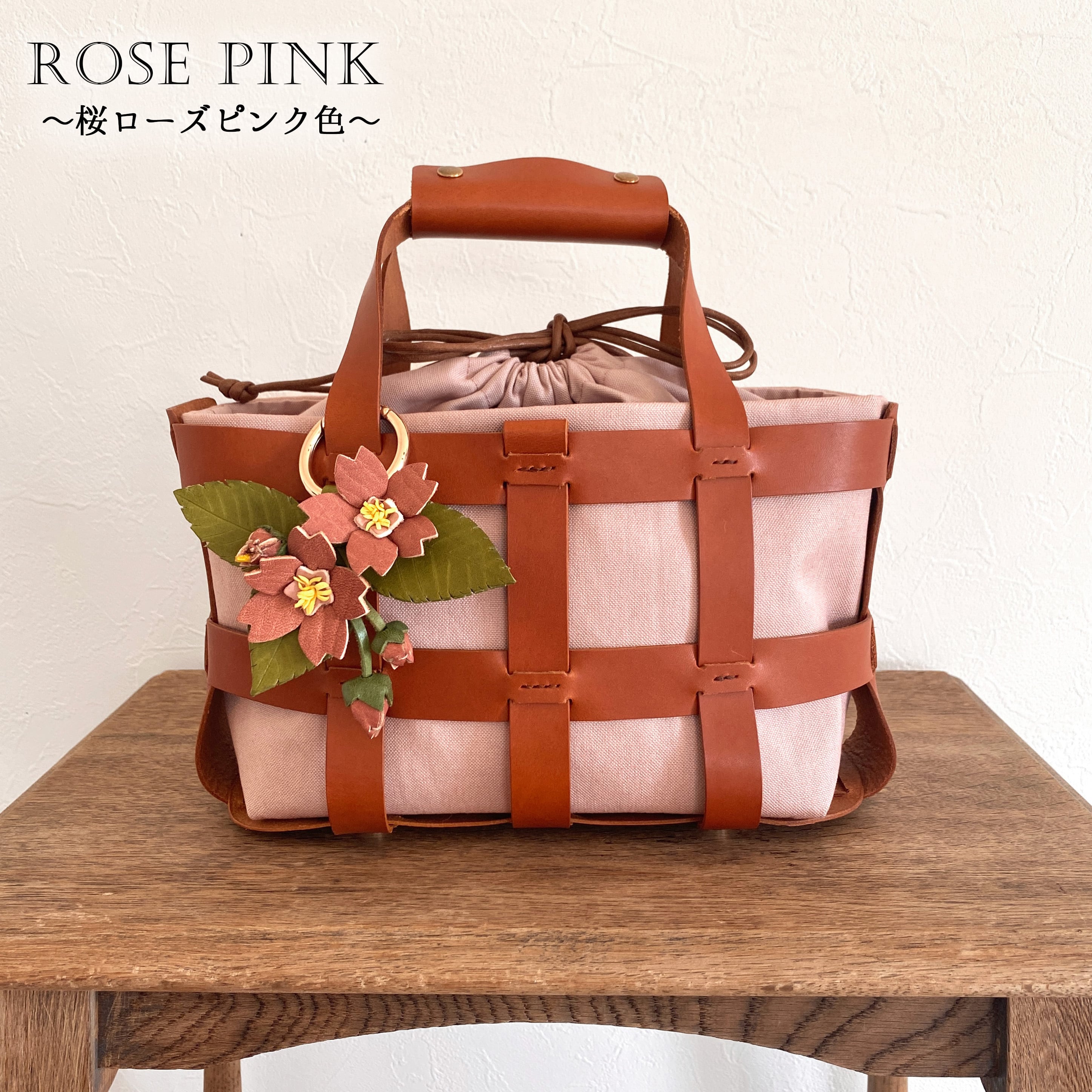 【春限定】桜色巾着&桜染めレザーで仕立てた桜チャーム付き!本革かごバッグ(30日以内に発送)