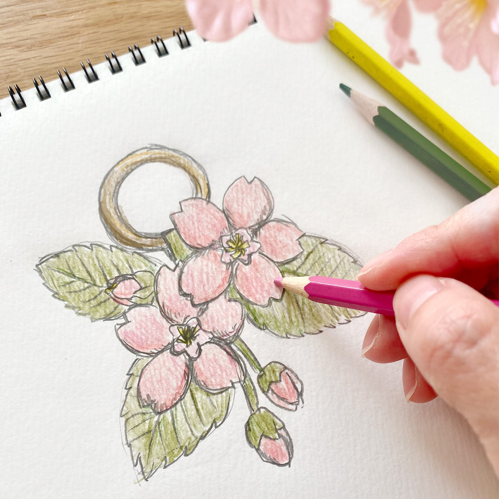 甘すぎず、上品に咲く桜が、装いに季節感を添えてくれます。