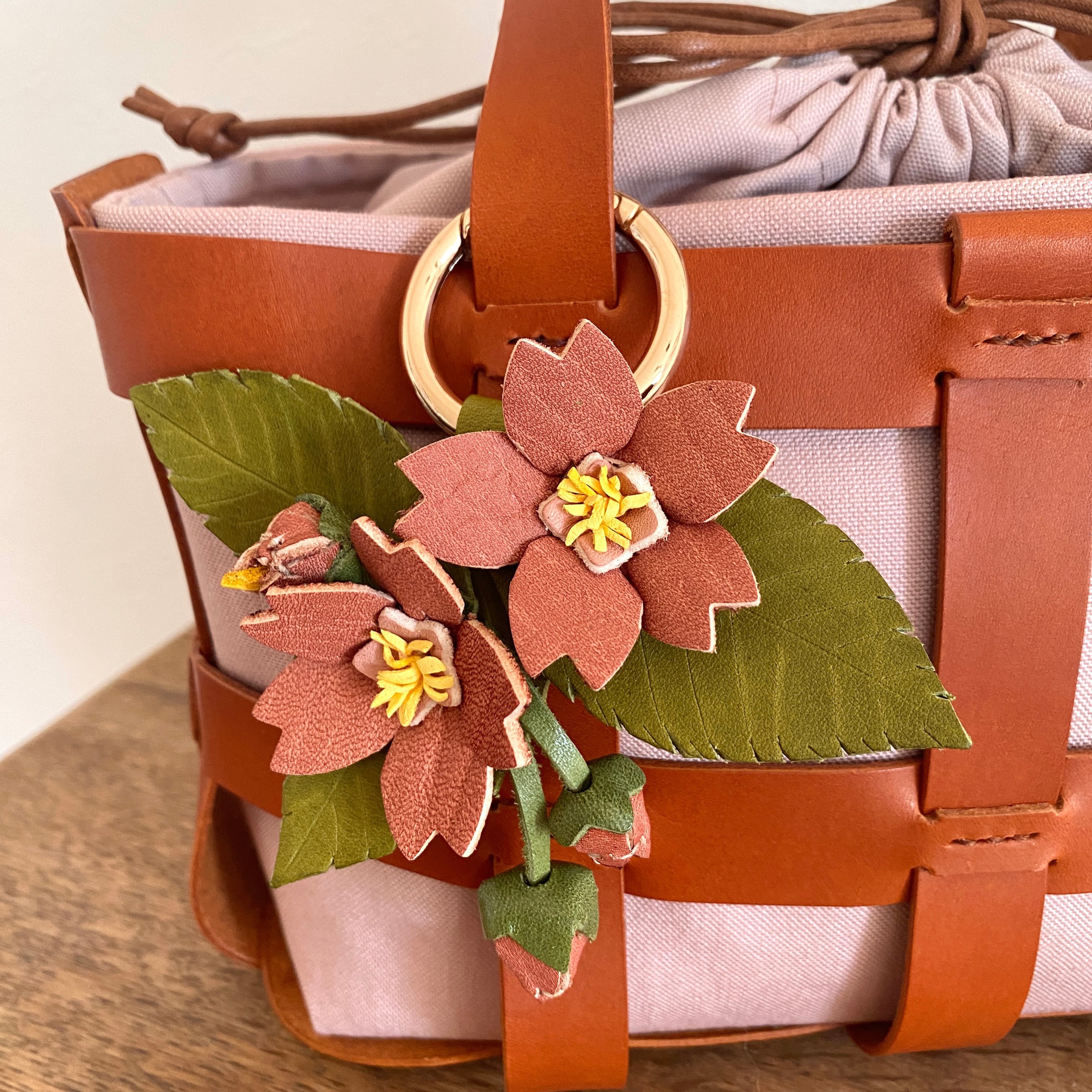 本物の桜から生まれた「桜染めレザー」のチャーム。