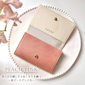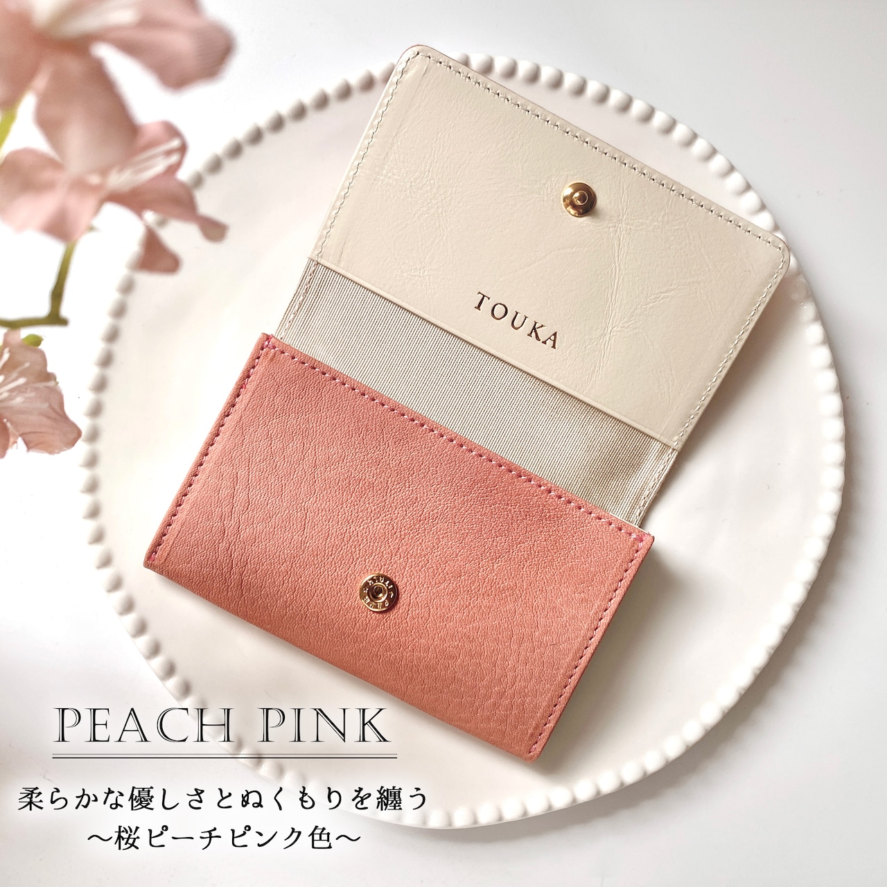 【現物をお届け】桜染めレザー名刺入れ・カードケース:桜ピーチピンク色【10日以内に発送】