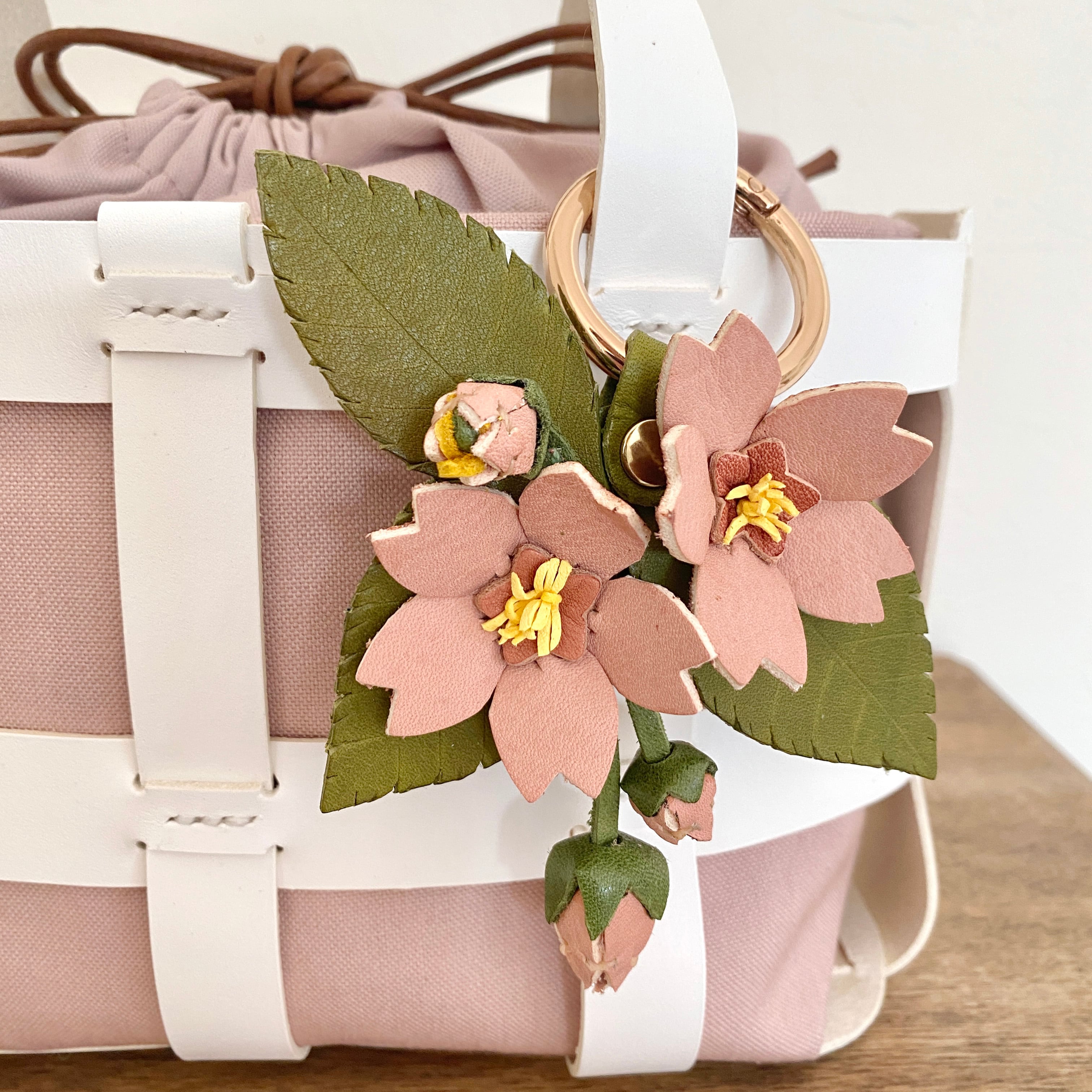 本物の桜から生まれた「桜染めレザー」のチャーム。