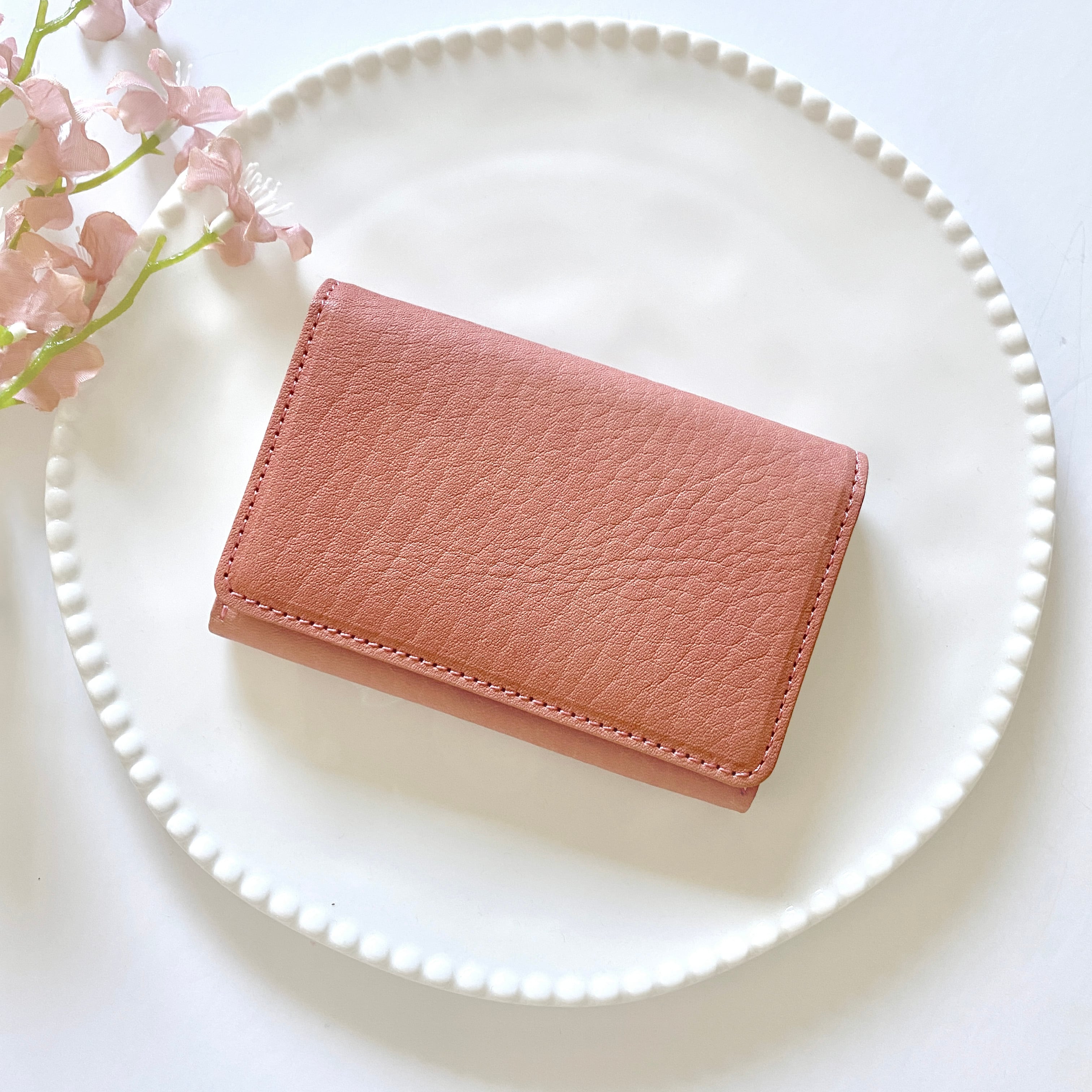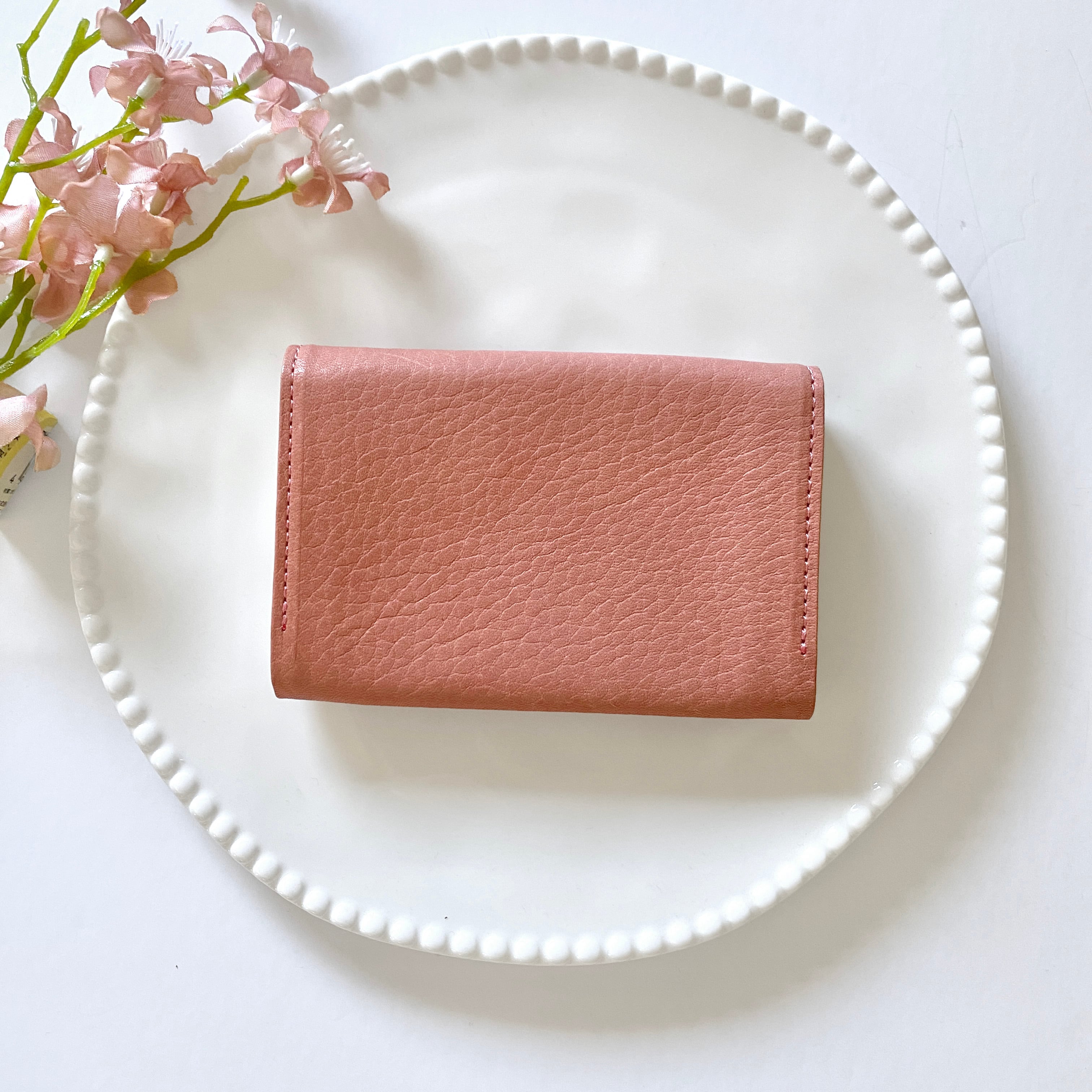【現物をお届け】桜染めレザー名刺入れ・カードケース:桜ピーチピンク色【10日以内に発送】